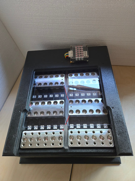 Machined 6061 aluminum bus and terminal bars for 18Ah sodium cells