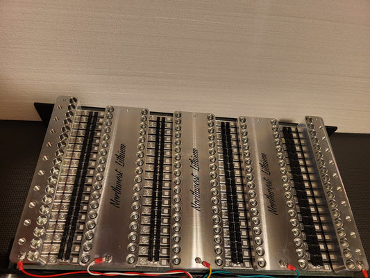 Machined 6061 aluminum bus and terminal bars for 18Ah sodium cells